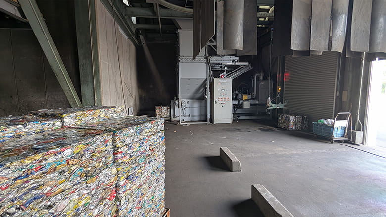 スチール缶とアルミ缶は、運びやすいように圧縮されます。